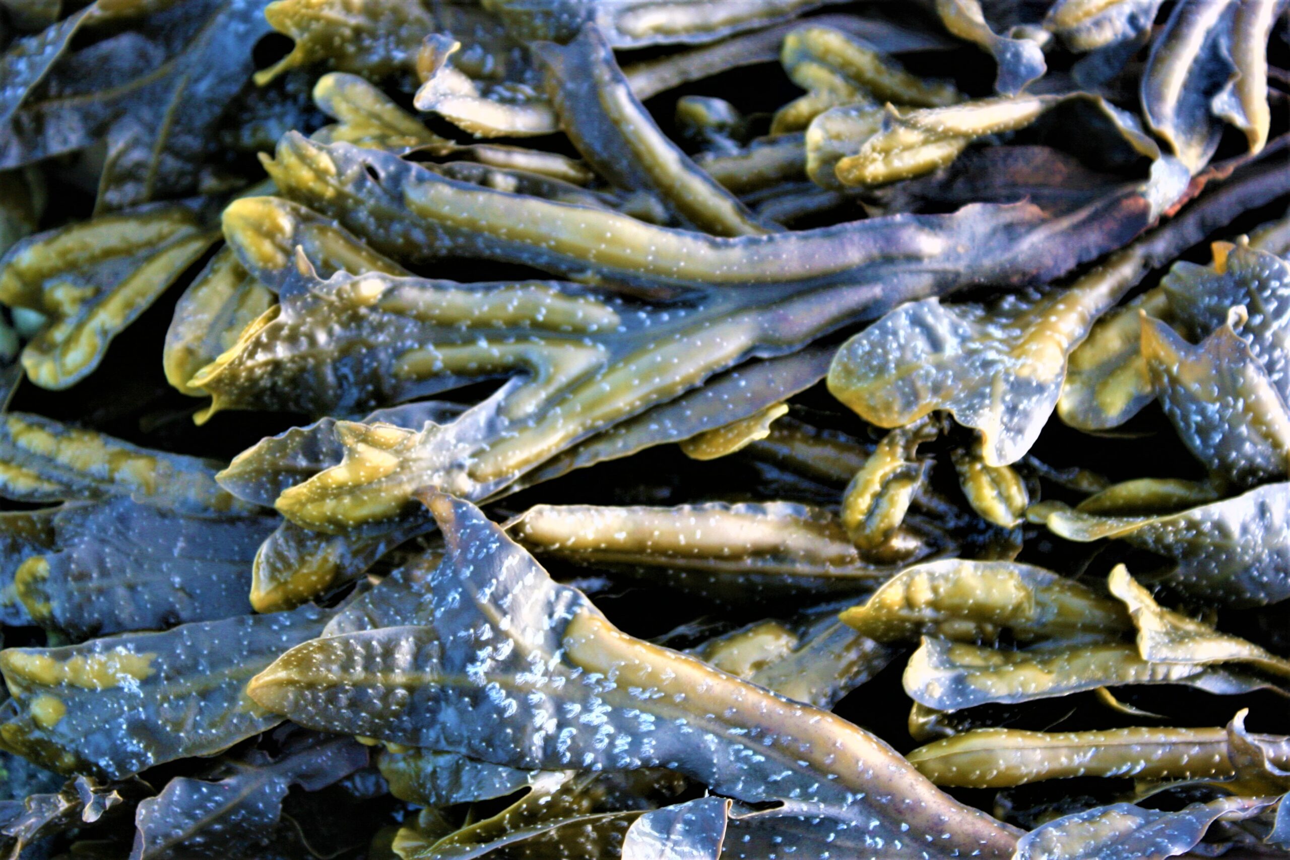 Horned wrack is closely related to other large brown intertidal seaweeds including bladder wrack and serrated wrack. However, Horned Wrack is restricted to growing in estuaries or near freshwater streams on the shore as it prefers a lower salt concentrationHorned Wrack does not have airbladders, but the side of the fronds are often inflated and branch out at the ends.