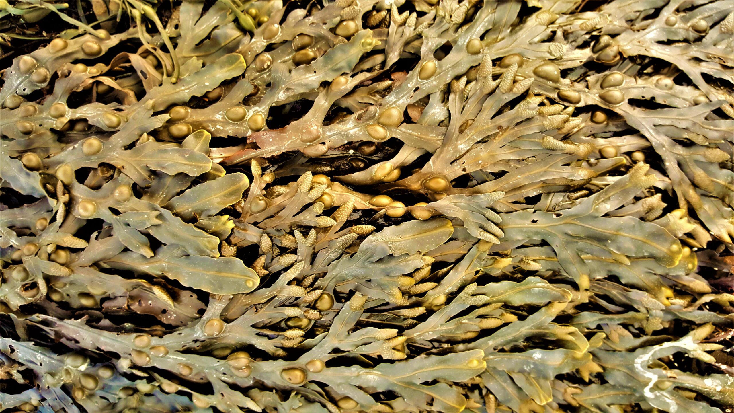 Bladder Wrack is probably the most recognised seaweed on the shore as it is very common and grows between the low and high water marks on the rock shore. The identifiable features of bladder wrack are the paired air bladders which allow the seaweed to float when it is submerged in water. It is important to note that Bladder Wrack doesn’t have serrated edges unlike the similar species of Serrated Wrack.