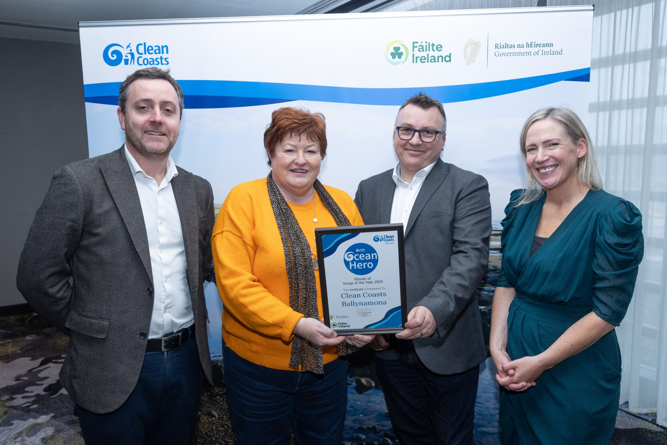 Clean Coasts Ballynamona is an exceptionally active community group delivering sustained, innovative, and measurable impact along the Cork coastline. In 2025, the group supported and delivered a series of high-impact coastal clean-ups, including the Big Little Beach Clean. They helped remove marine litter from over 80 kms of coast, supported by more than 1,100 volunteer students and teachers and community volunteers numbering over 400. As well as beach clean education remains central to the group’s approach.