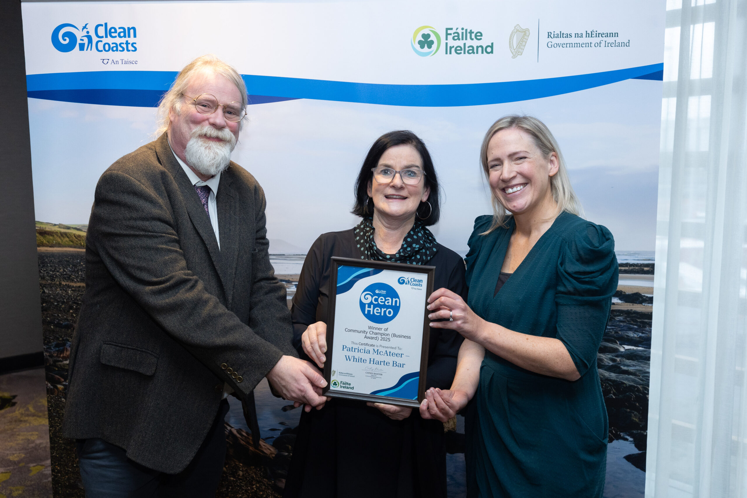 Patricia McAteer, proprietor of The White Bar, has been a driving force behind Rathmullan Coastal Care since founding the group in 2013. Her leadership led directly to the formation of the Coastal Warriors in 2015, an HSE personal support programme for adults in Letterkenny. Each Wednesday, the group travelled to Rathmullan for exercise, fresh air and litter picking, building confidence, friendships and a strong sense of community. Patricia warmly welcomed them into her bar afterwards for tea and sandwiches.